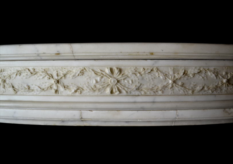 A small statuary marble bow fronted Louis fireplace with fluted jambs.
