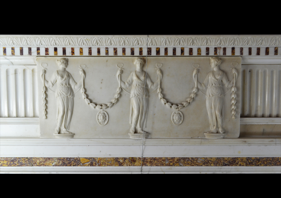 A late 18th century English marble chimneypiece of good quality and in good condition incorporating unrelated 18th century elements of similar quality and even date.