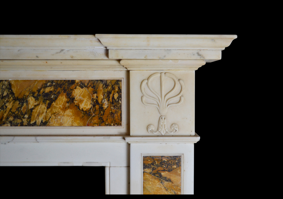 Regency chimneypiece in Statuary marble with Siena inlay and astronomical centre tablet detail.
