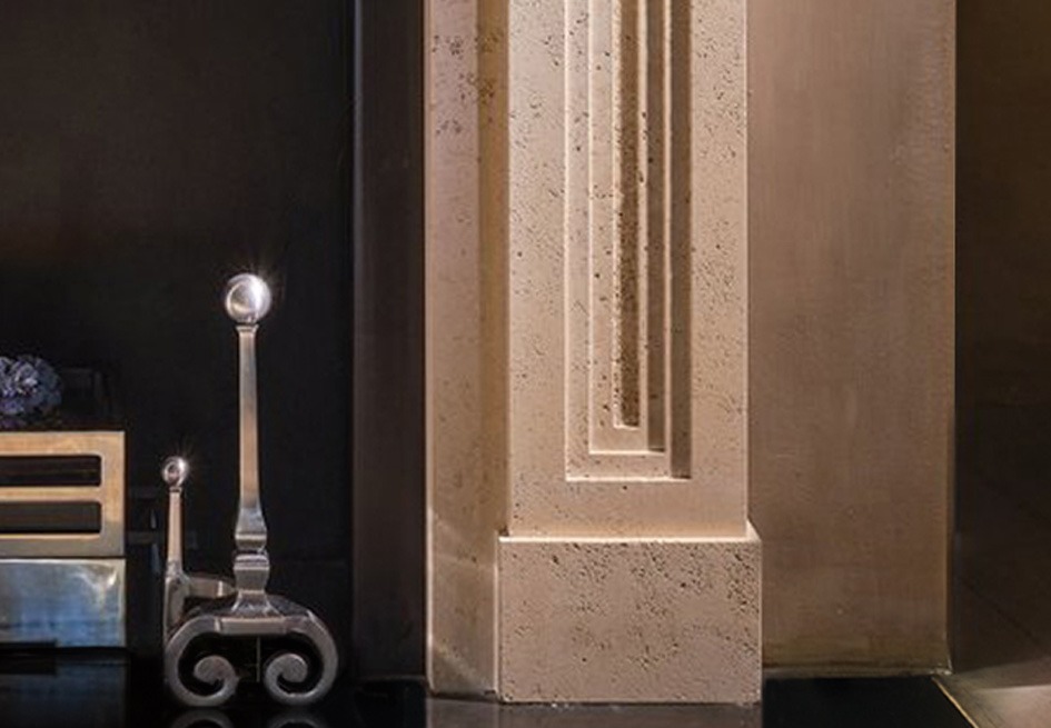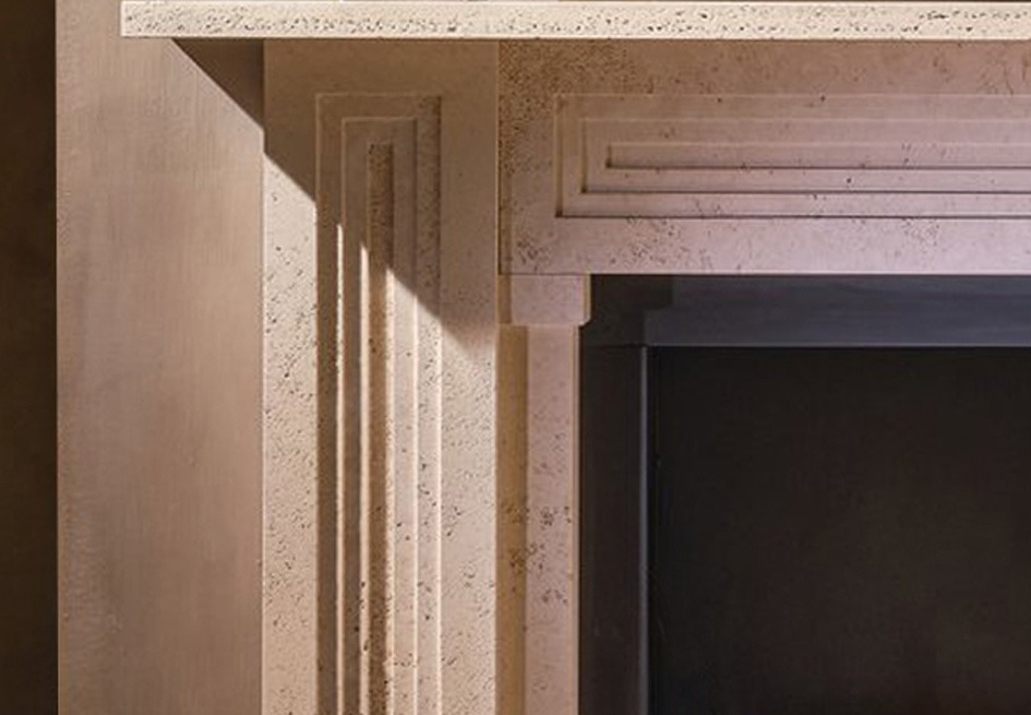 With elements both rough and refined, the Homer uniquely captures antiquity and modernity.  This mantel’s strong architectural form is executed in unfilled Ivory Travertine