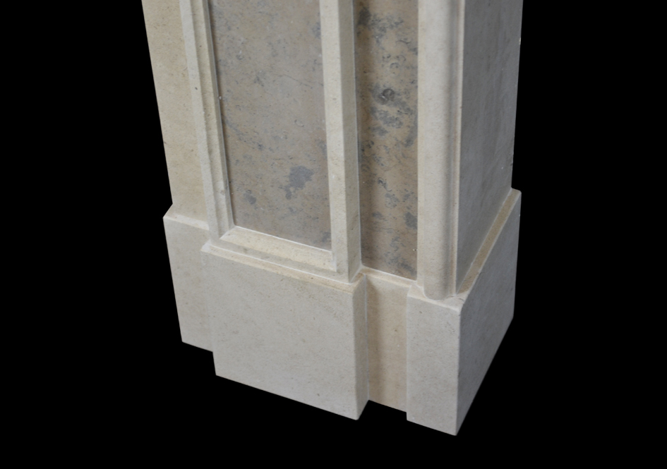 The Madison chimneypiece in limestone with Blue Molianos inlay.