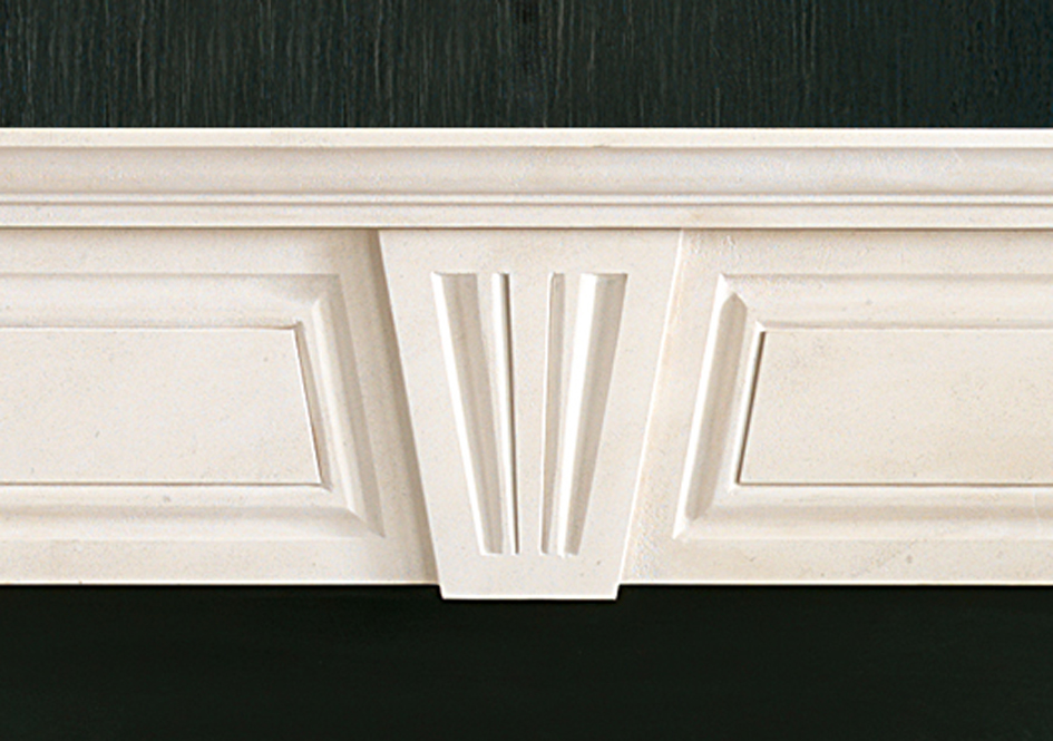 A Limestone chimneypiece of early 18th century design with incised panels and a central keystone very often found in panelled rooms.