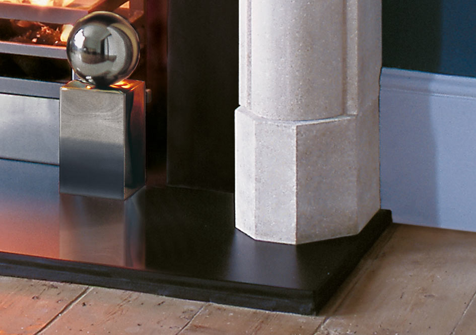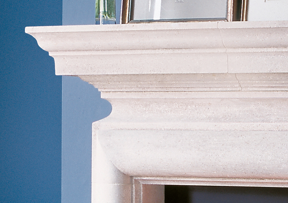 A striking design of elegant simplicity with a strong architectural form, the Stirling incorporates a corniced mantel shelf and bolection moulding in the frieze and jambs. Carved in Italian Bianco Avorio limestone. Also available in optional sizes.