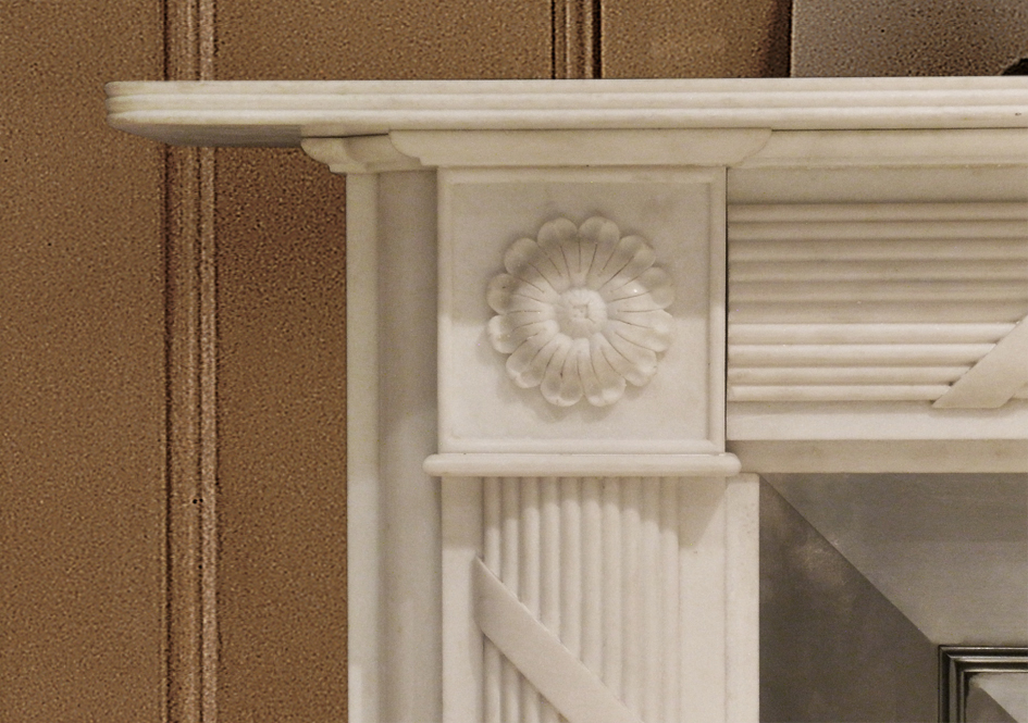 The Edinburgh features bowed reeded pilasters and conforming frieze with diagonal ribbons and finely carved paterae to the corner blocks.